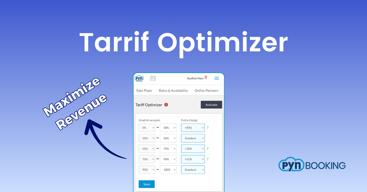 Pynbooking automatically optimizes rates: it increases sale prices when demand and occupancy are high and likewise decreases prices when both are low. During busy periods, rooms will be sold at a better price, and at other times, the rates will be lowered to increase attractiveness and bookings.